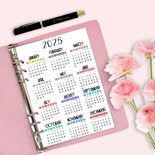 2025 Yearly Calendar Page for Bullet Journal | A5 Overview