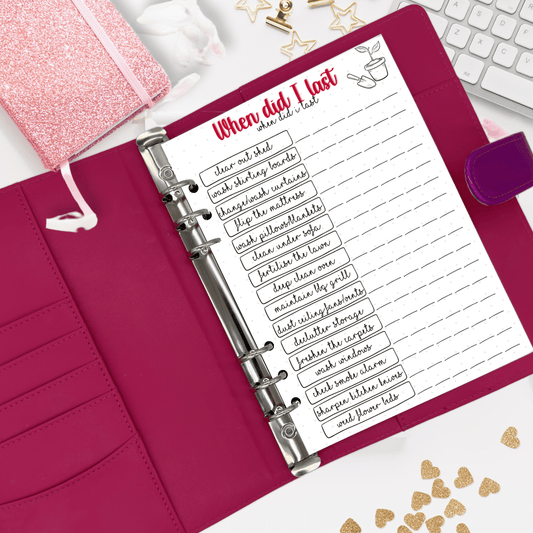 A5 "When Did I Last..." Cleaning Tracker – Chore Journal Page