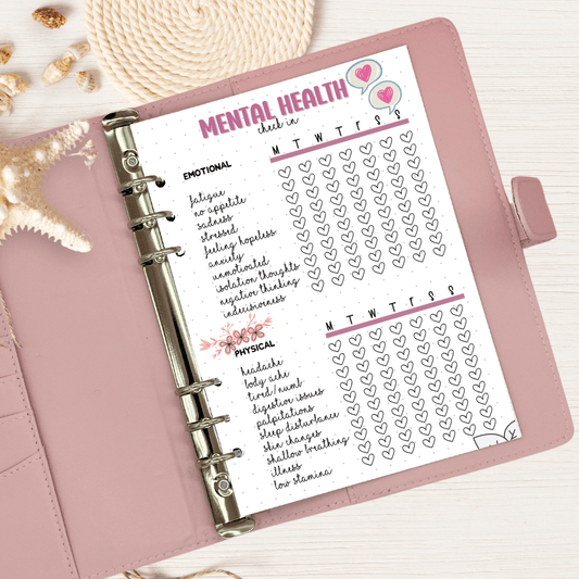 A5 Mental Health Check-In Page – Weekly Heart Reflections